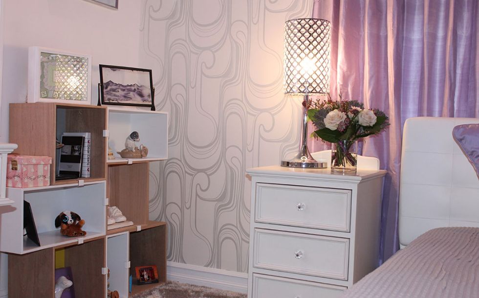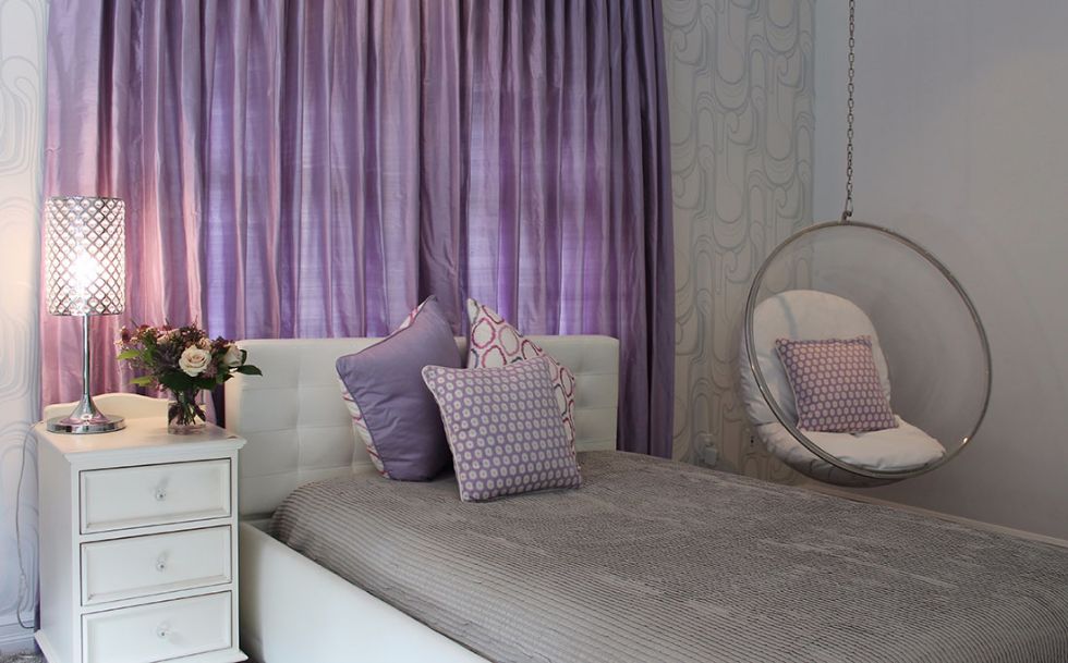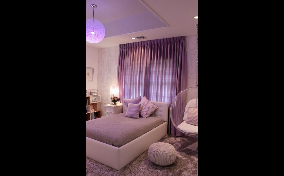 Remember the 60's… Bubble chairs, shag carpet, and silver wall covering? When a young girl was ready for a bedroom update, we created a retro style groovy theme. This fun filled-room with suspended bubble chair and today's technology. The room features a color-changing LED globe light, with lighting moods that she can play around with and control from her iPhone!