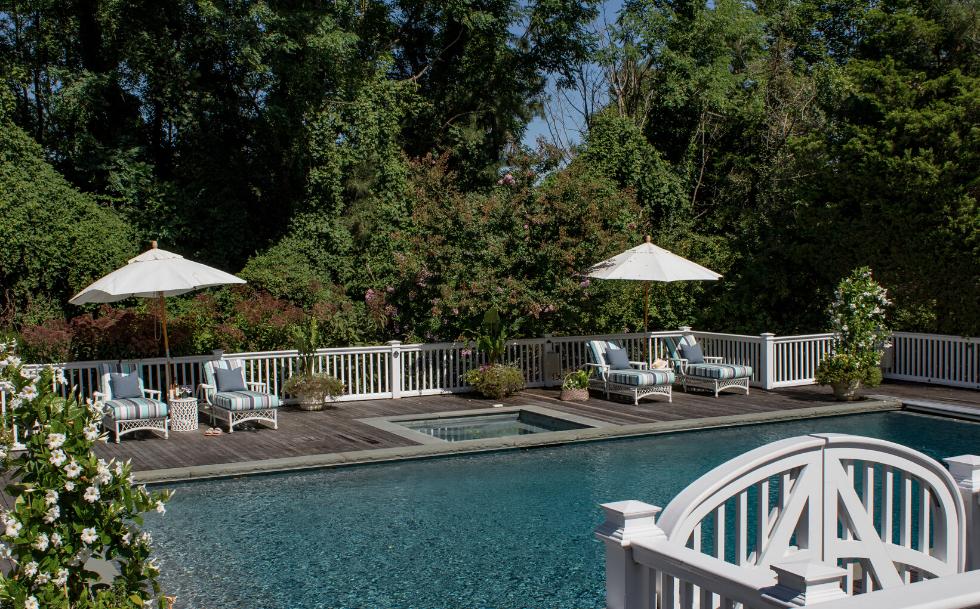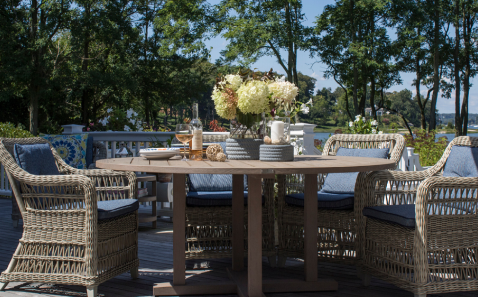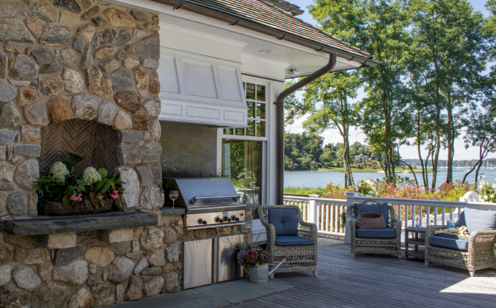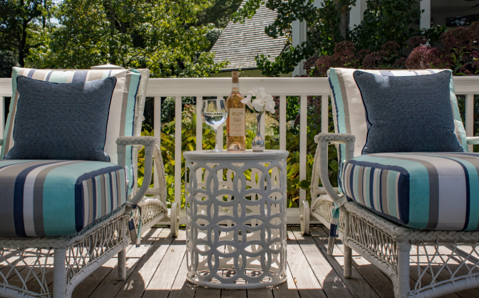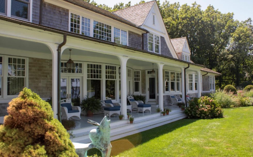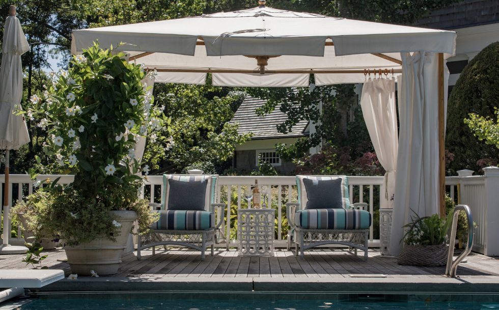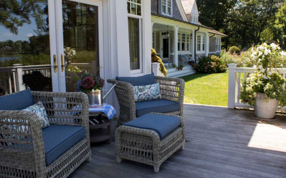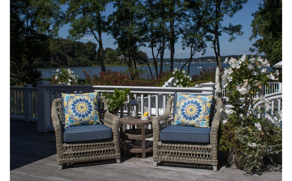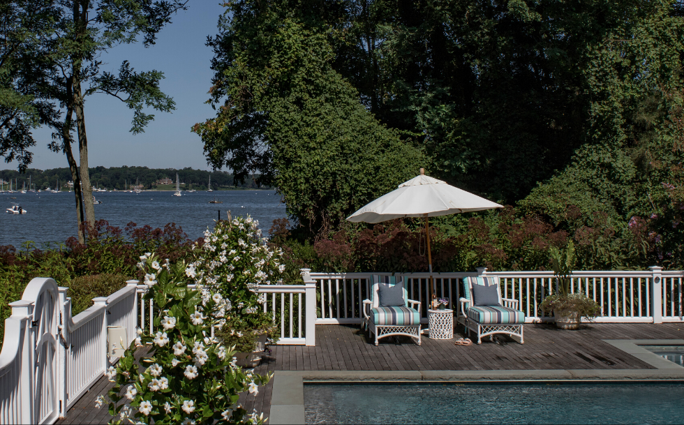 Inspired by this Kean Development shingle style waterfront home, we created a luxurious, multi-faceted outdoor living space. "Discriminating taste in design demands the utmost attention to detail." That was our guiding philosophy when selecting, ordering and staging this artful arrangement of outdoor furnishings, fabrics, custom upholstery and accessories.